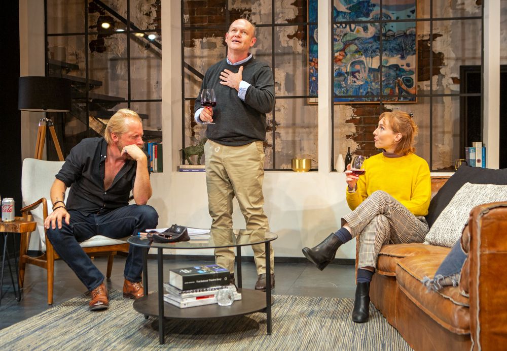 Performances are first rate – Jeremy Waters posturing the arrogant swagger of the entitled movie star, Brian Meegan exuding controlled fluster as the placating director, and Harriet Gordon-Anderson firing as the feisty anti Fenian pro Brexit playwright.