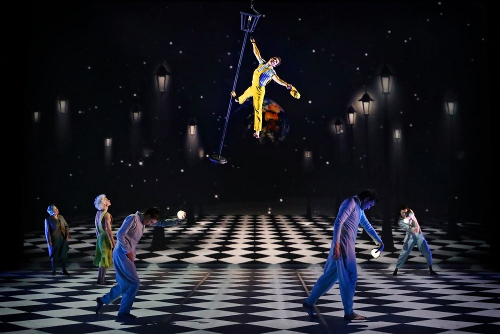 The physicality of circus and acrobatics tells the story as there is no dialogue between characters. Chris Mouron is the narrator and her French accent added a genuine charm and connection to the writer’s nationality. The deliberate choice to use body language and energy to communicate the narrative was beautifully emphasised in the dance between The Little Prince and The Fox. Linoel Zalachas, as The Little Prince, and Dylan Barone, as The Fox, were cosmically connected on stage – we could truly believe genuine emotion was passing between the two. It encapsulated the playful and the purposeful and the heartfelt and the heartache that goes with forming a bond with another.