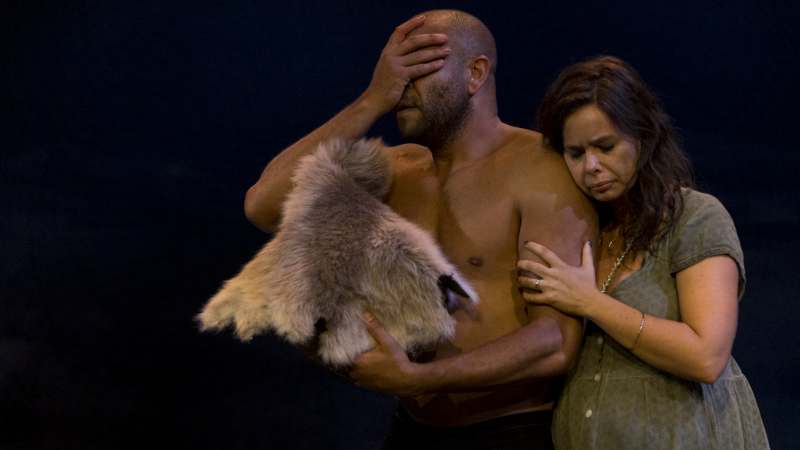 Jacob Nash’s set design is exquisite with its ochre walls, star studded sky, and bleached bone ghost gum perimeter which acts as practical prop as well as aesthetic and symbolic compliment. Keerthi Subramanyam’s costume design is similarly sublime, depicting character in the day to day and exalting in the ceremonial.