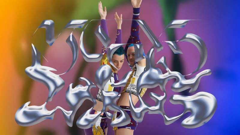 Seven dancers, in techno street chic (designed by Perks + Mini), sometimes collectively groove, with jerky arms and quick flicks of heads and juts of knees. Other times they stare, brood, or wrap themselves, parkour-style, around the bright green playground ramps jutting out of their humanoid environment. In the opening, they pose, reaching to the sky, like religious statues.