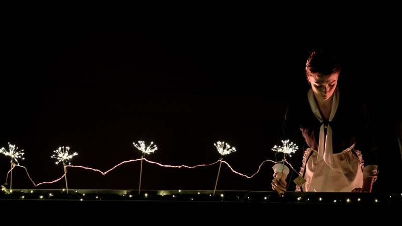 The first thing we encounter stepping into the auditorium of the Reginald Theatre for a performance of Mike Bartlett’s Albion is Monique Langford’s set design conjuring England’s green and pleasant land. Loads of turf and lashings of leaves and a huge trunk of a tree in the far right corner. A well kept garden tended by faithful retainer, Matthew, who opens the show raking crisp and curly leaves, the deciduous debris heralding winter. This may be viewed as a metaphor as Matthew represents the autumn of an era. If so, is Audrey the hint of Spring?