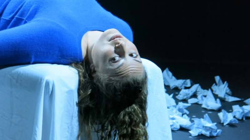 A bare stage with a covered table and a chair, sheets of paper scrunched up in angry origami littering the floor. It’s a simple image that softly, surely becomes part of the narrative in Subtlenuance’s production of Softly, Surely.