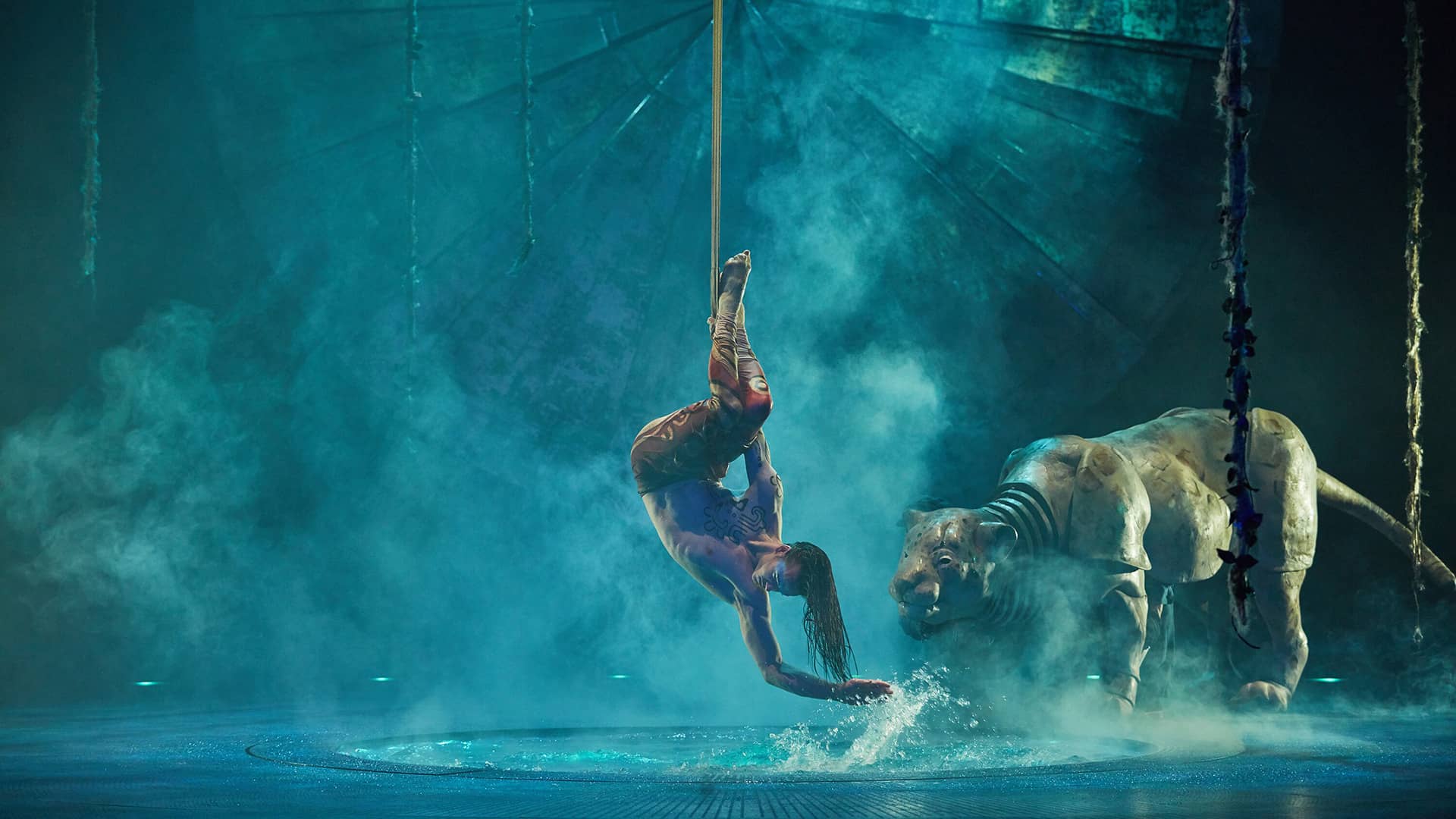 Inspired by the sights and sounds of Mexico – the music, the flora and fauna, even the wrestling – Luzia is a jumble of imagery all wrapped up in spectacular environments that include a vertical waterfall raining down like a tapestry on a loom and a plunge pool for an aerialist to thrash in and out of.