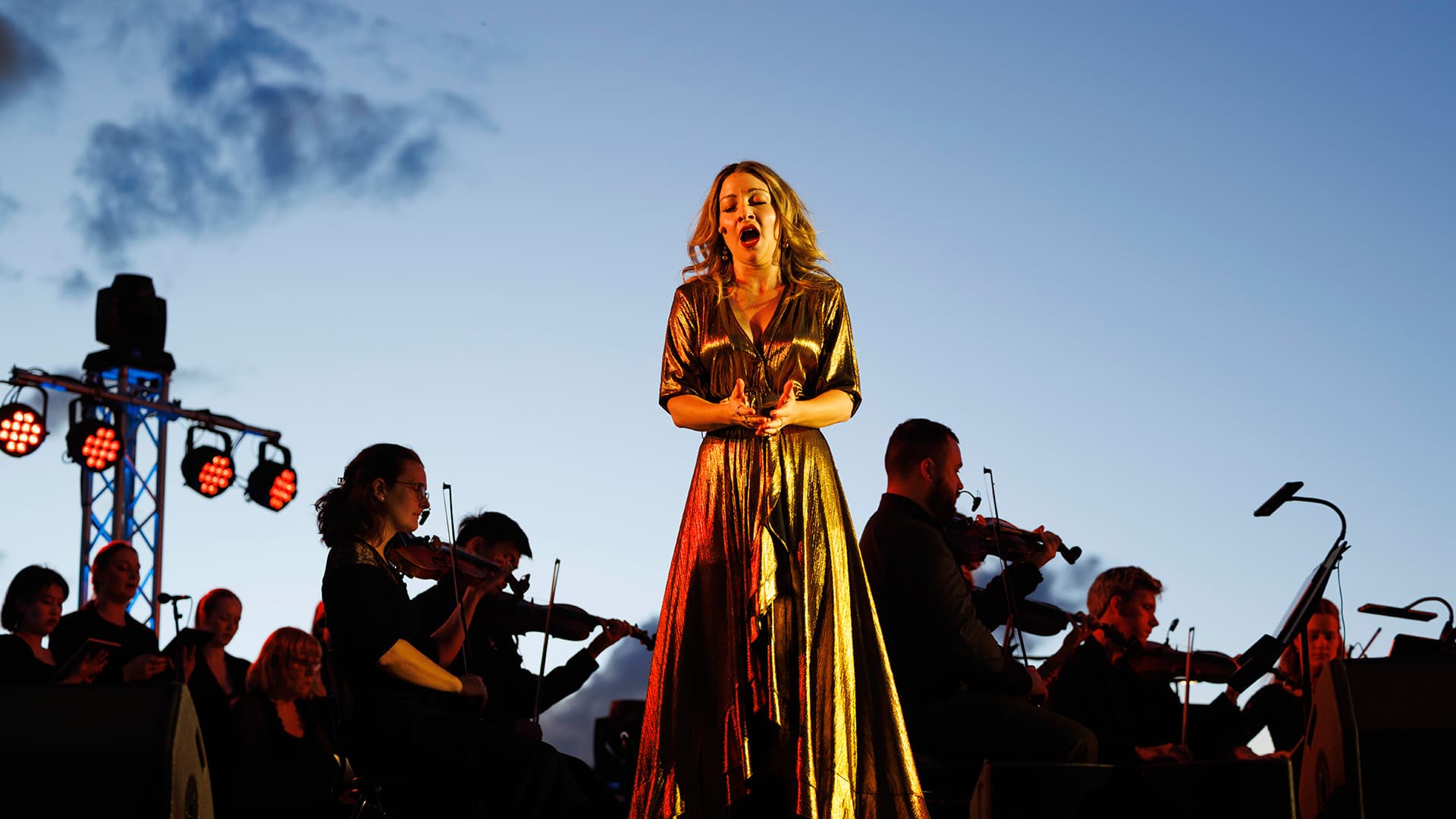 Singing outdoors for opera singers accustomed to acoustic environments is challenging – there’s a tendency to push the voice because it feels as if the sound is disappearing. Stenzel has learned to, ‘sing the way it feels rather than the way it sounds.’