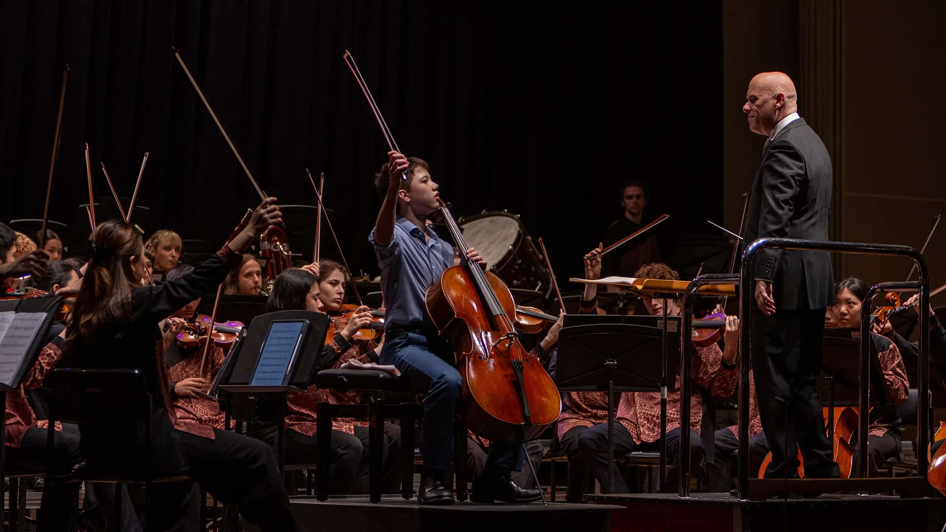 Three remarkable young finalists performed, Maggie Wang, cello, Sophie Pan, Violin and Jun Gardiner, cello. Each delivered challenging concertos. Credit must go to the conductor Fabian Russell who directed the Queensland Youth Symphony with aplomb, crucially achieving suitable balances between soloist and ensemble. Producing clean lines and vividly conjuring each composer’s language, Russell contained the players youthful exuberance where appropriate and insightfully mapped each work’s artistic trajectory.