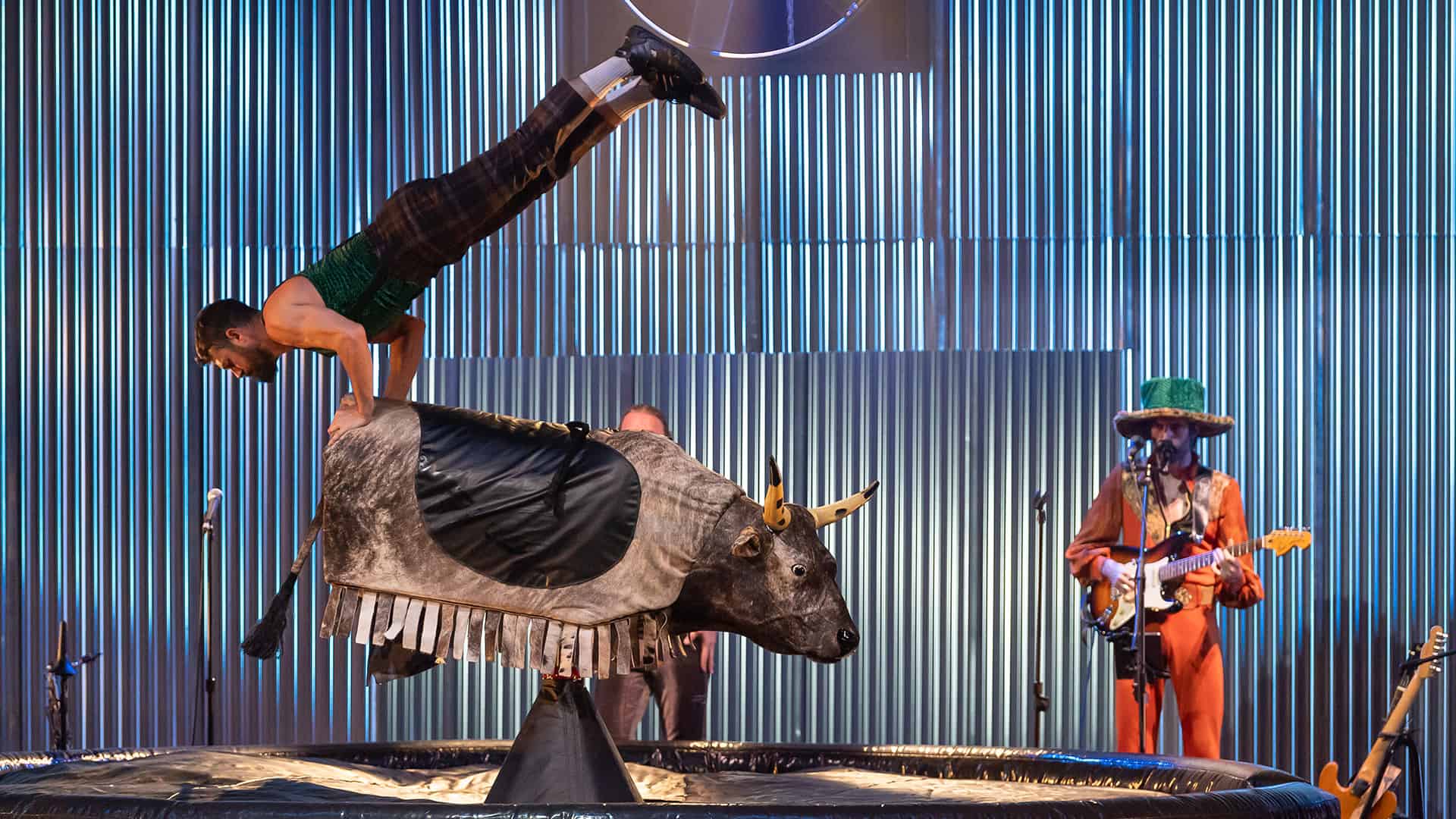Animal by Cirque Alfonse is a quirky and masterful piece of circus theatre. From the moment the performers walk onto the stage it is clear that each has their own unique style and personality. When they come together as an eclectic collective, the fun begins. Live music and rhythm are the glue for this show, moving the narrative along, keeping time for the insane circus acts and allowing us an insight into the culture of the performers’ home land of Quebec.