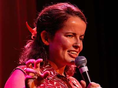 The audience of about 14 punters were almost completely unresponsive to her monologue, perhaps because she had plenty to say but her storytelling left much to be desired. She seemed to have one volume of delivery and it was full on with no real need for a microphone. As she explained her background was half English/half Irish and her accent was thick. She also suffered from a lack of timing, tumbling from one story to the next with almost no breaks to allow for audience reaction.