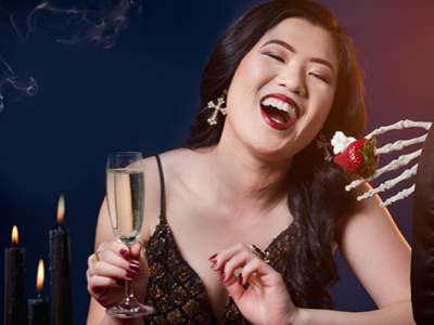 Standing next to an upright coffin, Dracula-style, and behind a podium, Louey's delivery is straight, with a twinkle in her eye.